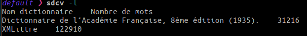 sdcv -lRenvoie la liste des dictionnaires installés.