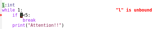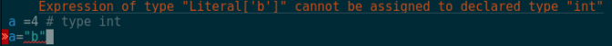 Le logiciel pyright fait du contrôle de type statique, un message d’erreur est envoyé dès la saisie s’il détecte une erreur de type :