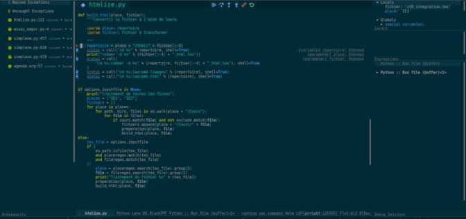 Comme toujours avec emacs, il y a un peu de travail !! Mais le jeu en vaut la chandelle, surtout si vous travaillez avec plusieurs langages de programmation que vous pouvez intégrer d’autre langage serveur à lsp-mode et à dap-mode. Les liens qui suivent donnent un aperçu des possibilités et de la richesse de l’éco-système d’emacs. Amusez-vous bien !